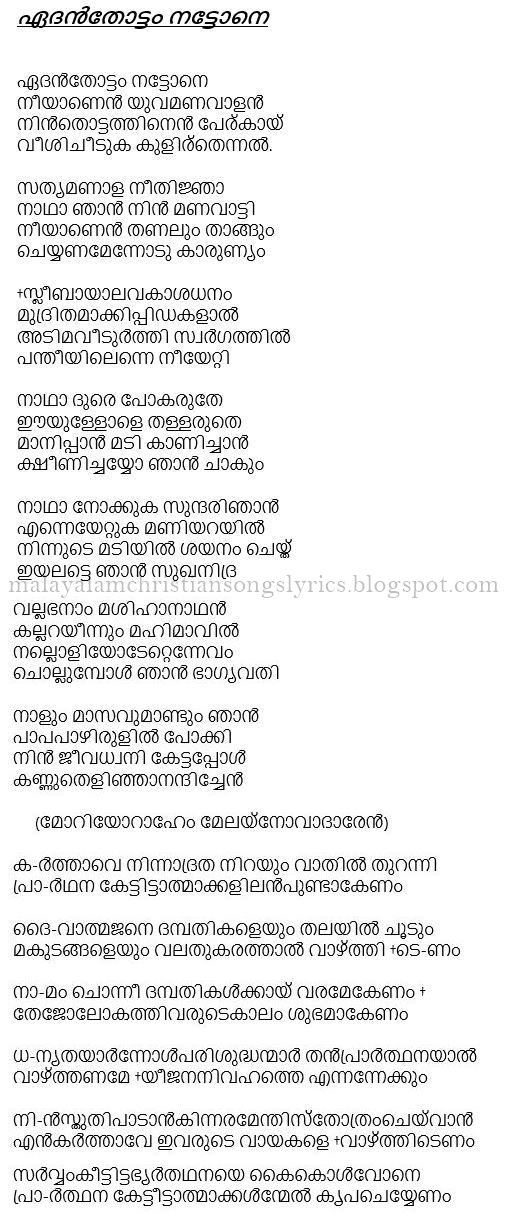 Christian Devotional Song Lyrics Eden Thottam Nattone Christian Holy Matrimony