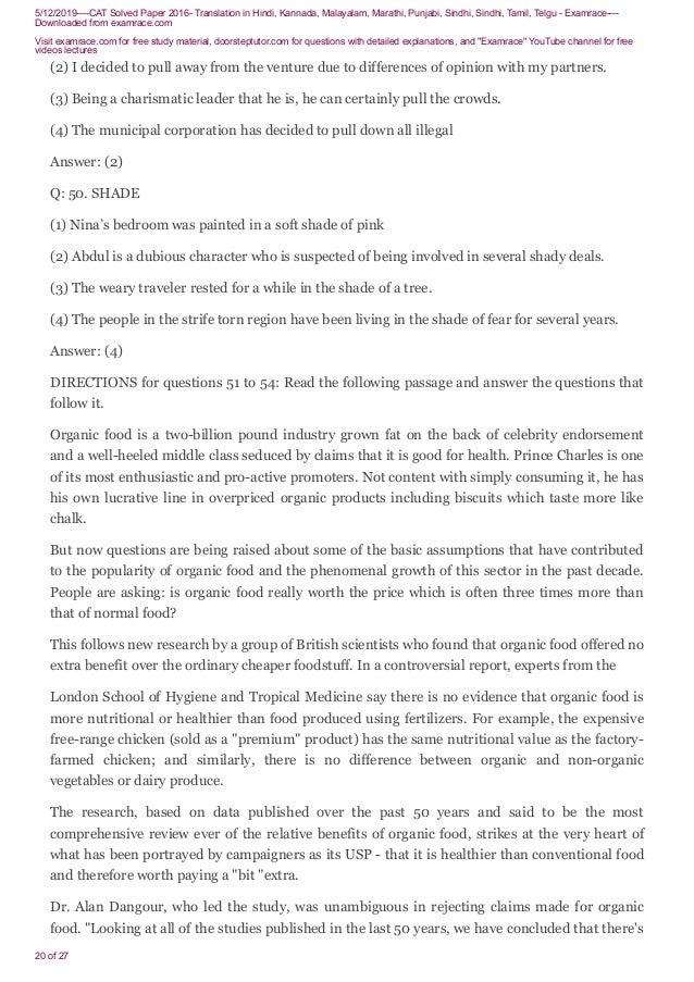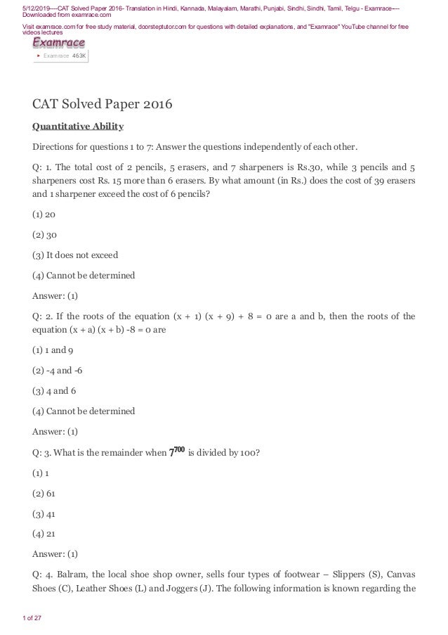 Cat 16 Previous Year Question Paper With Answer Key