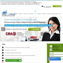 Free My Cloud Pty Ltd is an Australian owned and operated business specialising in providing offshore Accounting & Bookkeeping Staff from the Philippines to Australian businesses. Free My Cloud Pty Ltd is an Australian owned and operated business specialising in providing offshore Accounting & Bookkeeping Staff from the Philippines to Australian businesses. Outsourcing Affordable Bookkeeping & Accounting Services from the Philippines for Australian businesses.