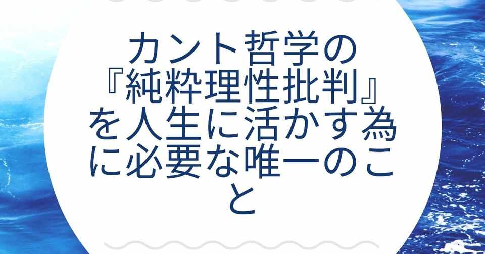 カント哲学の 純粋理性批判 を人生に活かすために必要な唯一のこと きたじままゆみ Note