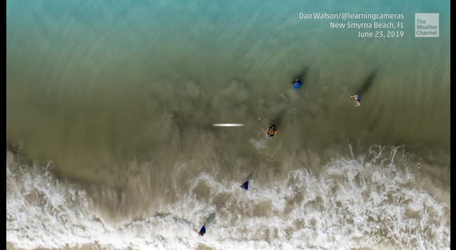 Video Drone Captures Aerial View Of Sharks Along New Smyrna Beach Florida