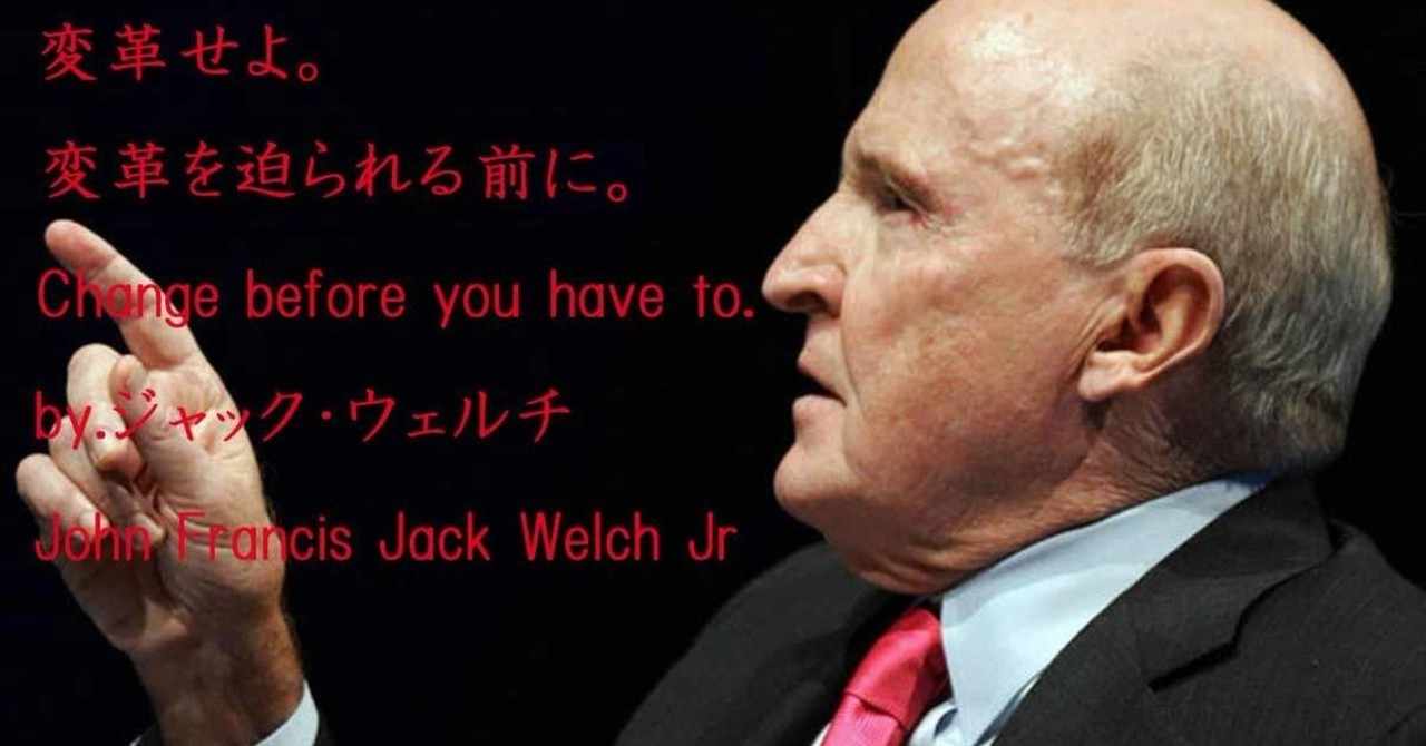 ジャック・ウェルチ ジョン・フランシス・“ジャック”・ウェルチ・ジュニア(John Francis "Jack" Welch Jr., 1935年11月19日 - )は、アメリカ合衆国の実業家。. 変革せよ。変革を迫られる前に。 Change before you have to. ジャック・ウェルチが経営者になるまで ジャック・ウェルチはマサチューセッツ大学を卒業した後はイリノイ大学で博士号を取得しています。 イリノイ大学といえば、東大や慶応などと協定を結んでいて、世界の大学ランキングでも100位以内にどの学部も.