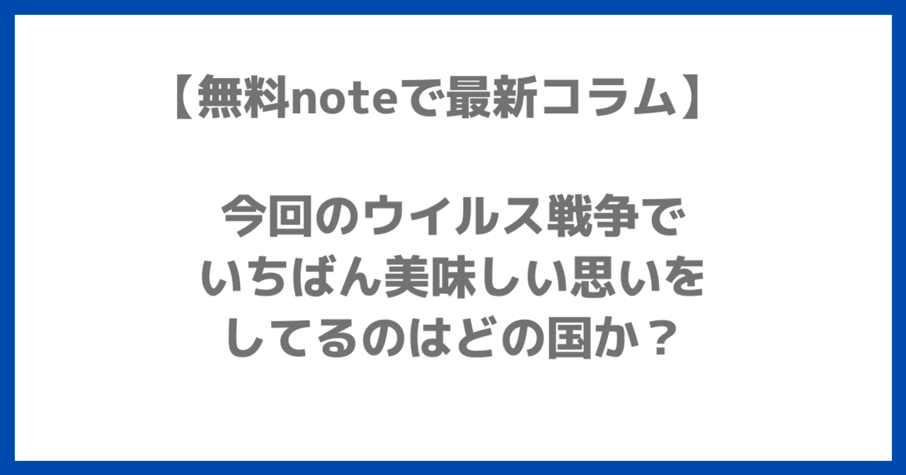今回のウイルス戦争でいちばん美味しい思いをしてるのはどの国か しゅう オクゴエライター Note