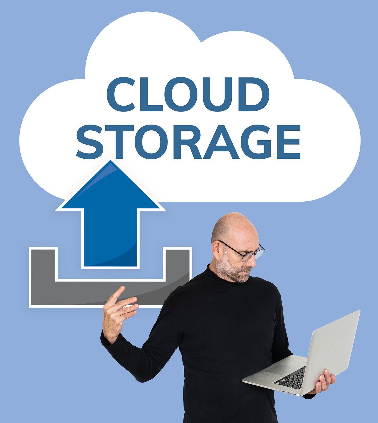 Man Carrying A Laptop And A Cloud Storage Icon Free Illustration
