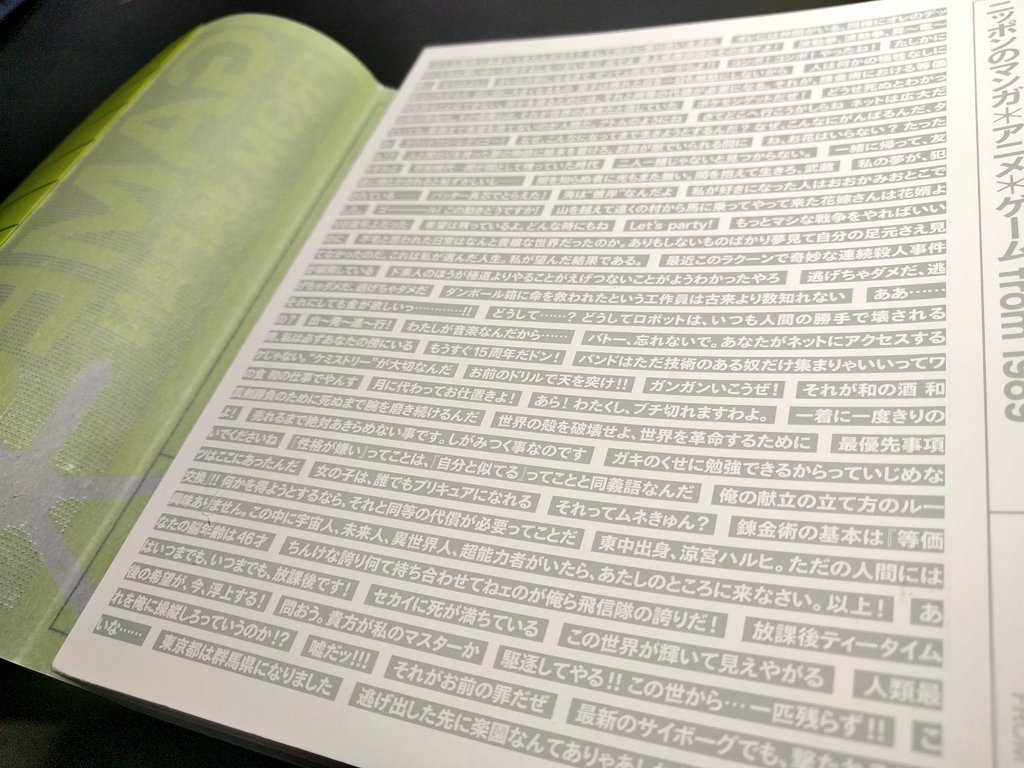 Ara 1 Auf Twitter ニッポンのマンガ アニメ ゲーム From 19 を購入 2年前に新国立美術館で開催された同名展示会の公式本 表紙カバー裏には作品の名言たち 最後には1952年からのサブカルチャー年表 寄生獣 19 メカクシティアクターズ 14 までの折込